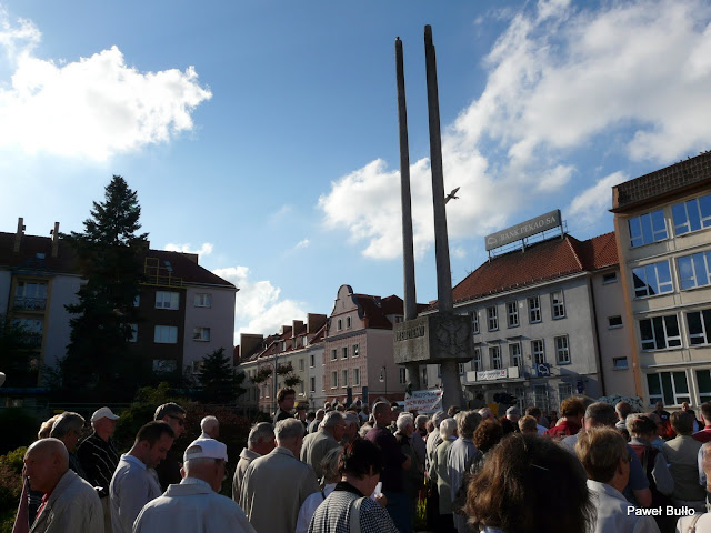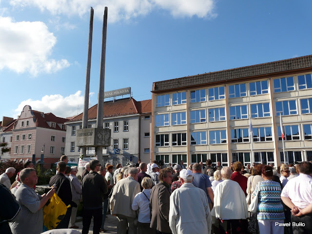 Następnie został utworzony krąg wokół pomnika jako symbol związania z pomnikiem oraz został odśpiewany fragment hymnu Koszalina [refren]. Trzeba napisać że gdyby nie wejście na mównicę Lecha Fabiańczyka, który zachęcił ludzi do śpiewania prawdopodobnie skończyłoby się to totalną klapą.